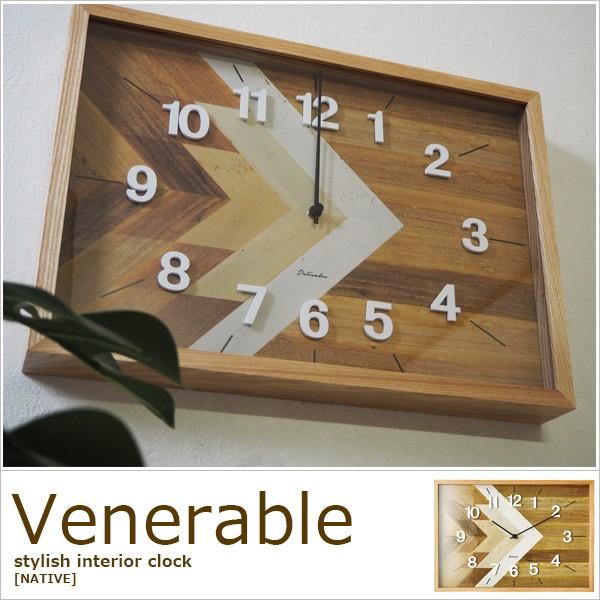 木製フレーム カッコイイ 掛け時計 Vene デザイン時計 長方形 かわいい 横長 四角 レクタングル 壁掛け時計 レクタングル 電波